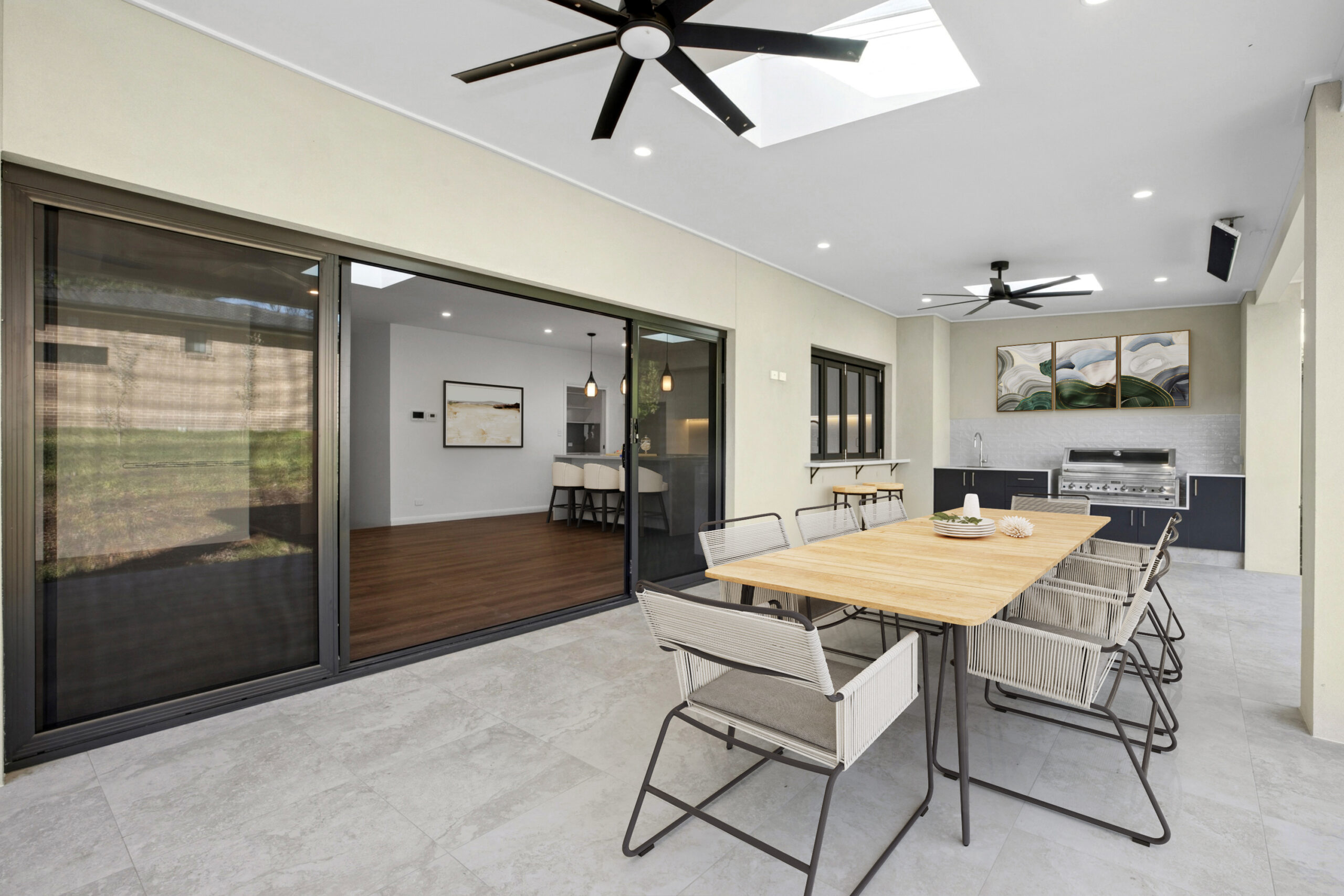At the heart of the home, a modern family kitchen is supported by a stacked butler’s pantry and connects seamlessly to an L-shaped BBQ alfresco via a tight bifold window—perfect for entertaining. Upstairs, an expansive central void, and a secondary living area anchor four bedrooms, a family bathroom with a separate WC, and a luxurious master suite complete with a walk-in robe, dressing room, and an oversized ensuite with its own WC. A beautifully balanced home where elegance meets modern family living.