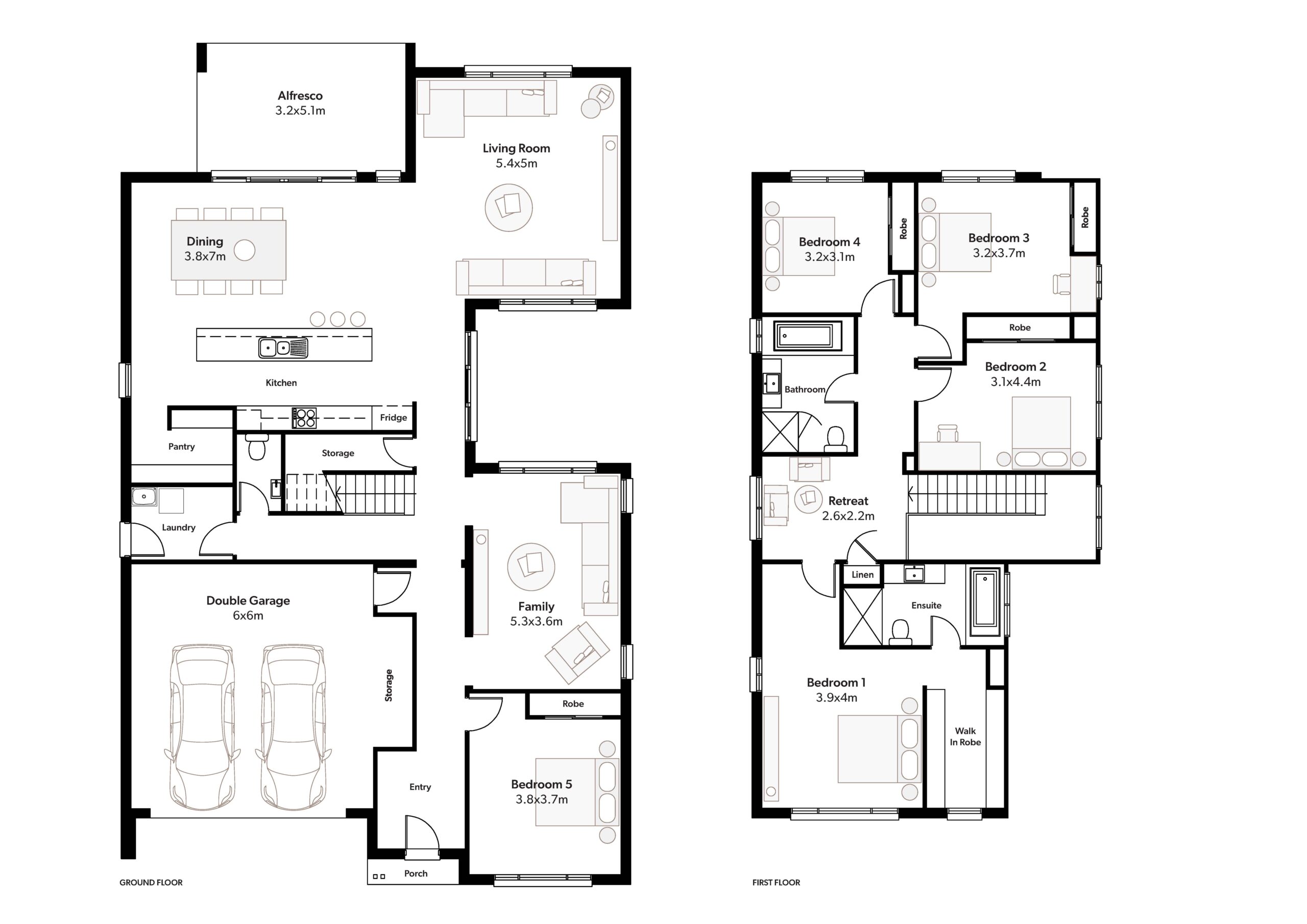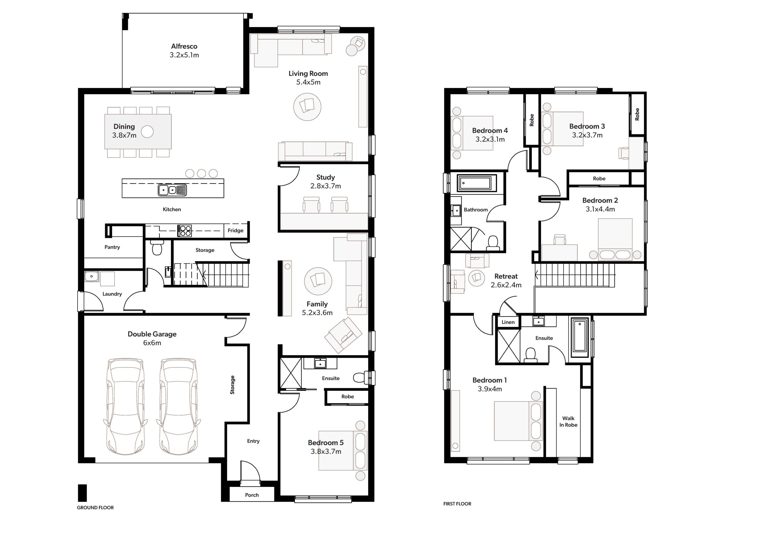 The Balmoral 39 consists of all the great features of its baby sister, the Balmoral 38, but with more internal space. The home still consists of a huge designer kitchen, four large living areas, five oversized bedrooms and plenty of storage. In lieu of a side courtyard, the study has been moved to the back of the house and a guest suite, including ensuite and robe have been incorporated into the front of the home. Perfect for when family comes to stay!
