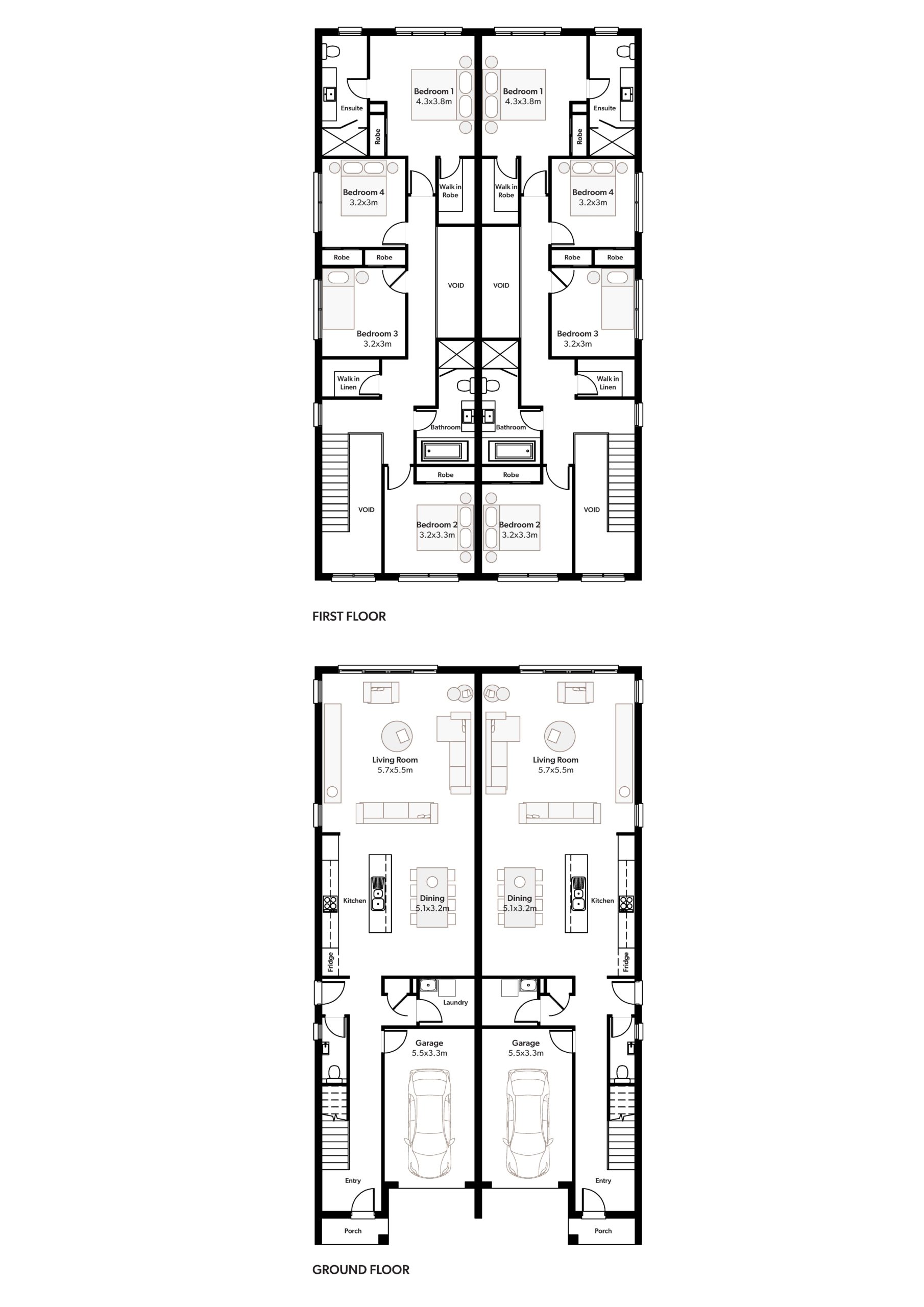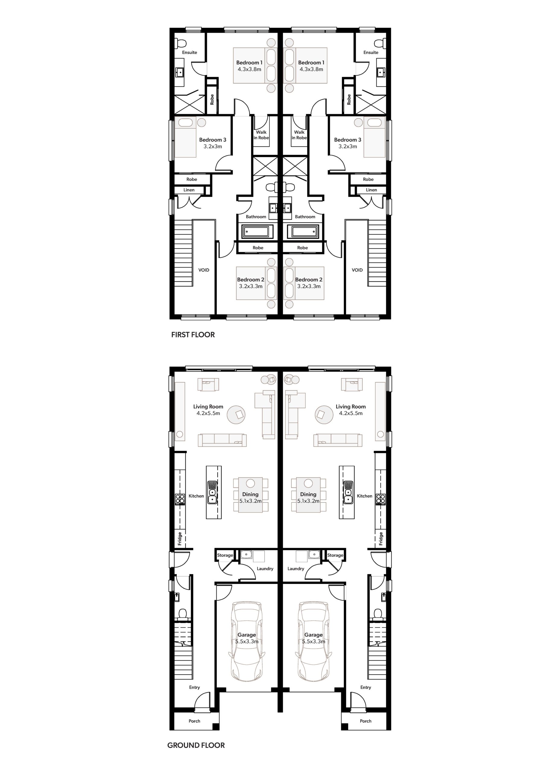 The Elvina 21 makes the best use of space for ultra-narrow lots or zero lot lines. The compact layout includes all the features of a modern home, including three generously sized bedrooms, open plan living, galley kitchen with a large island bench and internal access to a single car garage. Carefully considered, this design allows maximum light into the home while still meeting narrow and zero lot requirements.