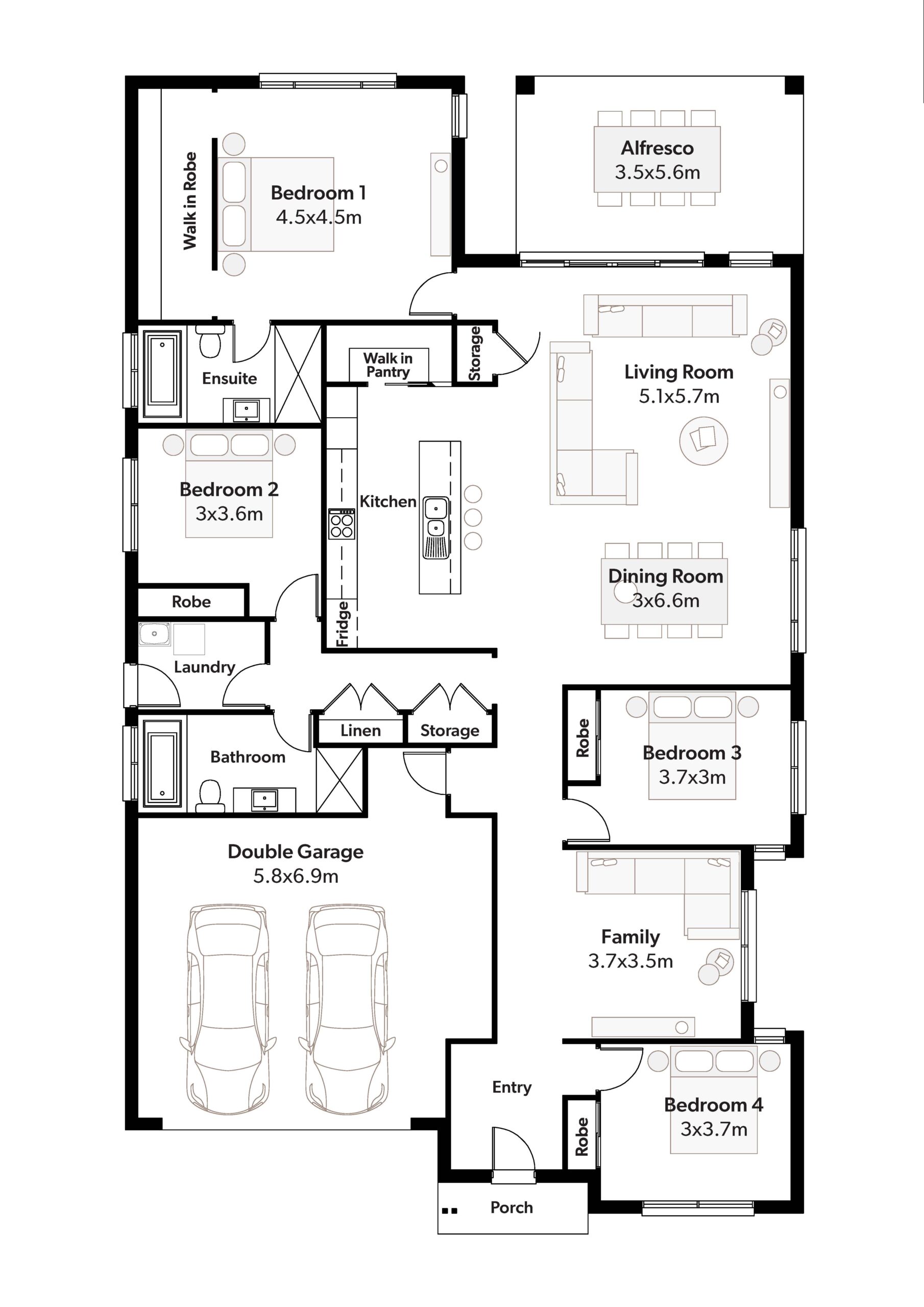 The Nelson 29 ticks all the boxes for modern living. Large feature packed kitchen with generous walk-in-pantry… Tick! Open plan family and meals… Tick! Four extra-large bedrooms and a separate living area… Tick, tick! Add some more ticks for an oversized alfresco, double lock up garage, two full sized bathrooms and storage for days! This home will rival any on the market for both a beautiful layout and well-appointed features.