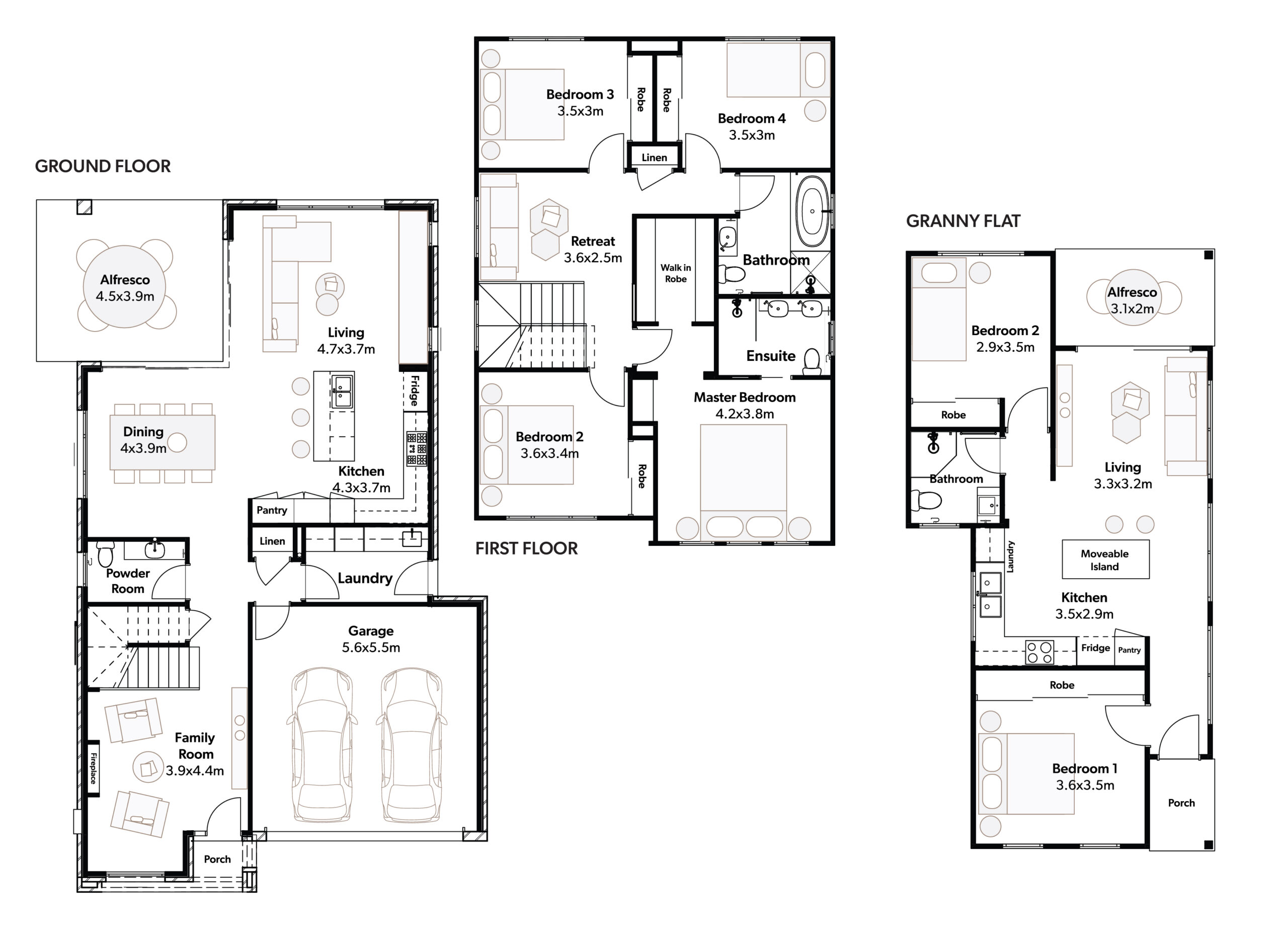 The Sanctuary Dual Key is a house and granny flat that features a 4 bedroom home with double garage, multiple living areas and ample storage options. The separate Granny Flat features two bedrooms, kitchen, living and alfresco. You can also build just the 4 bedroom home by itself but best of all this entire home can customised to suit your needs!