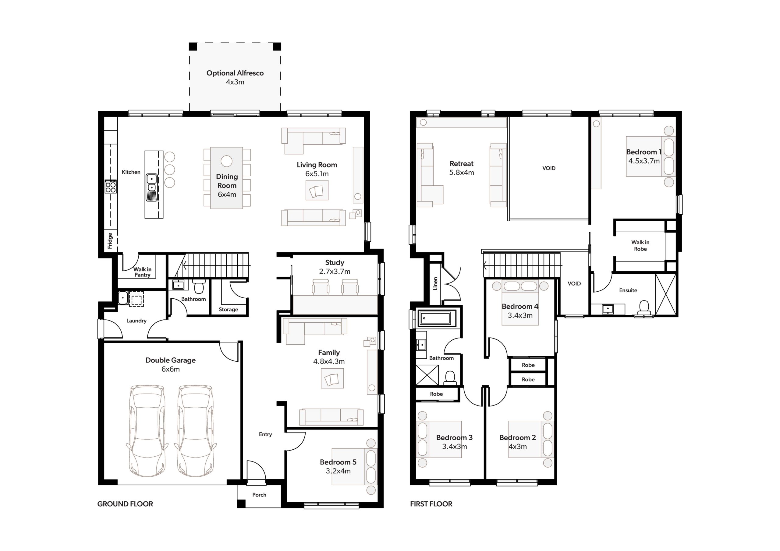 The Vaucluse 39 will not leave you struggling for space or features. This extensive home design has space galore! The large open plan kitchen, dining, family room, five double bedrooms, separate study and separate living areas both upstairs and downstairs are only a few of the features built into this beautiful home. We haven’t even touched on the walk in storage throughout the home, the separate master suite or the impressive light void directly over the living area. If you’re looking for a grand home on a grand scale, then this is the home design for you.